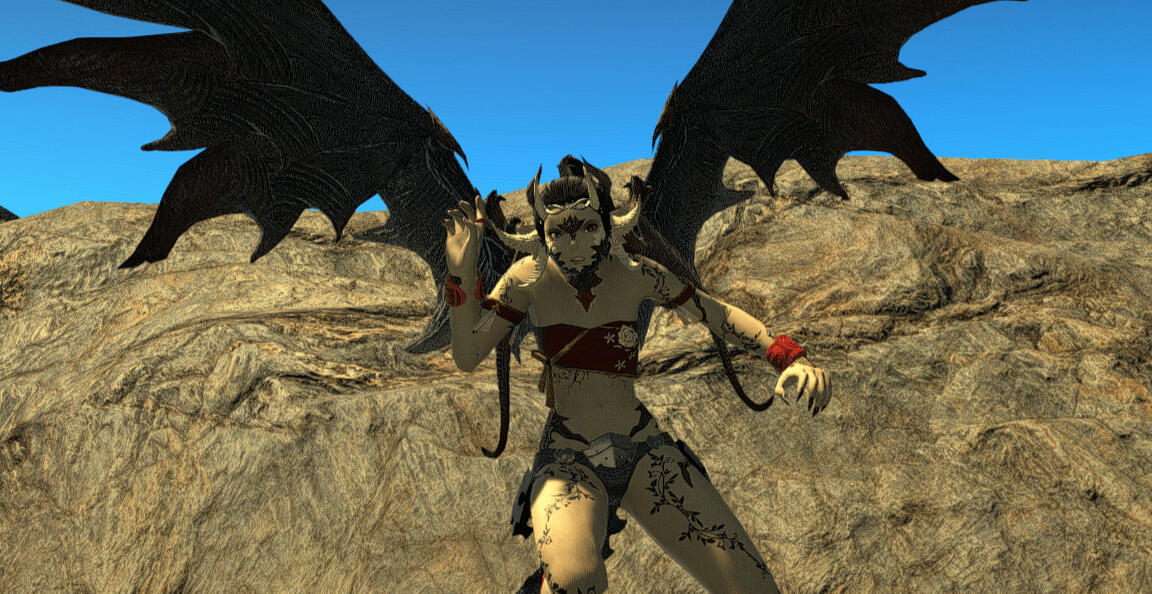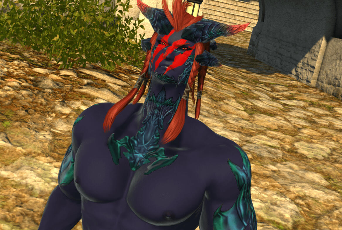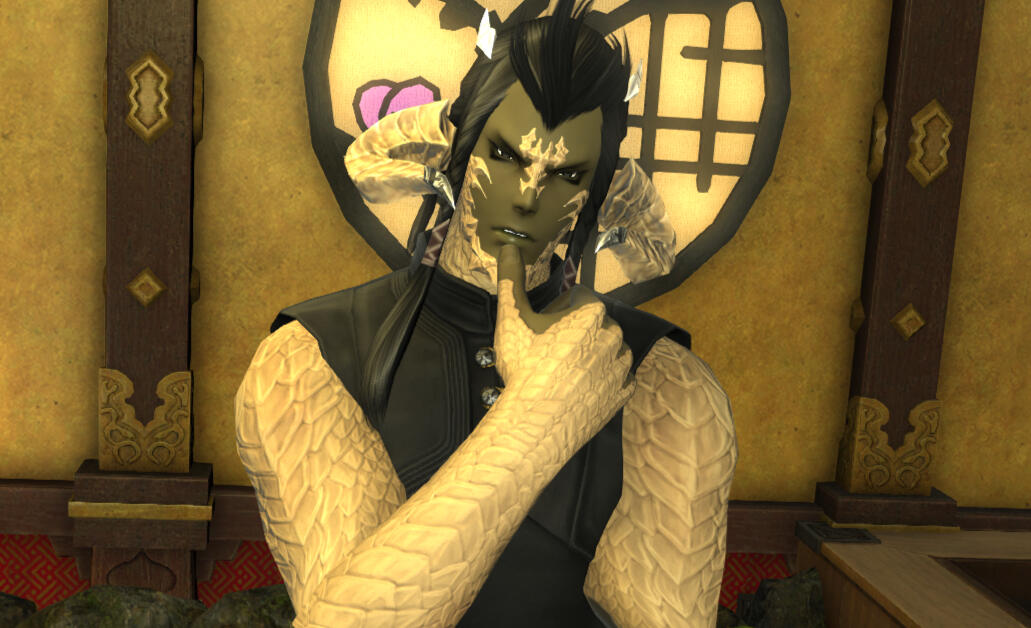 Occupations: Homemaker, samuraiPersonality: Fiery and stubborn to a fault, Wufei will argue until he's blue in the face when he feels like he's right on a matter. That side easily gives way to tender nurturing when it comes to his husband or his children, of which he has three.Bio: Wufei's parents hail from Sui no Sato and decided to leave to explore the world while he was still in utero. After some travel, they found themselves on the Azim Steppe which, while venturing outside of Reunion, led to their capture and enslavement by the Oronir. Wufei was allowed to be born, but what happened to his parents after that is a mystery. To this day, he doesn't know if they're dead or alive. Wufei was raised as a slave to the Oronir tribe, being fed scraps and teased and abused as the tribe saw fit. The only ones who were even partly kind to him were Maqali and the cook. After the hyur Hien came and beat the Oronir in the Nadaam, Wufei went with the tribes to Gyr Abania to help reclaim Ala Mhigo. While the rest of the xaela left to return home, Wufei decided to stay, making his own life and defying his once-masters. On his travels, he met another xaela, Heero, and the two fell fast in love, wedding and having triplets.The trauma of childbirth led to a dormant power surging forth and Wufei's body began to change. His scales grew dark green and red, his tail thickened and grew spikes, new horns sprouted from his head, and he grew great wings upon his back. He would learn that he shared aether and blood with Nidhogg through his ancestors and that the power was manifesting in him to protect him from the pain he felt rearing his offspring.